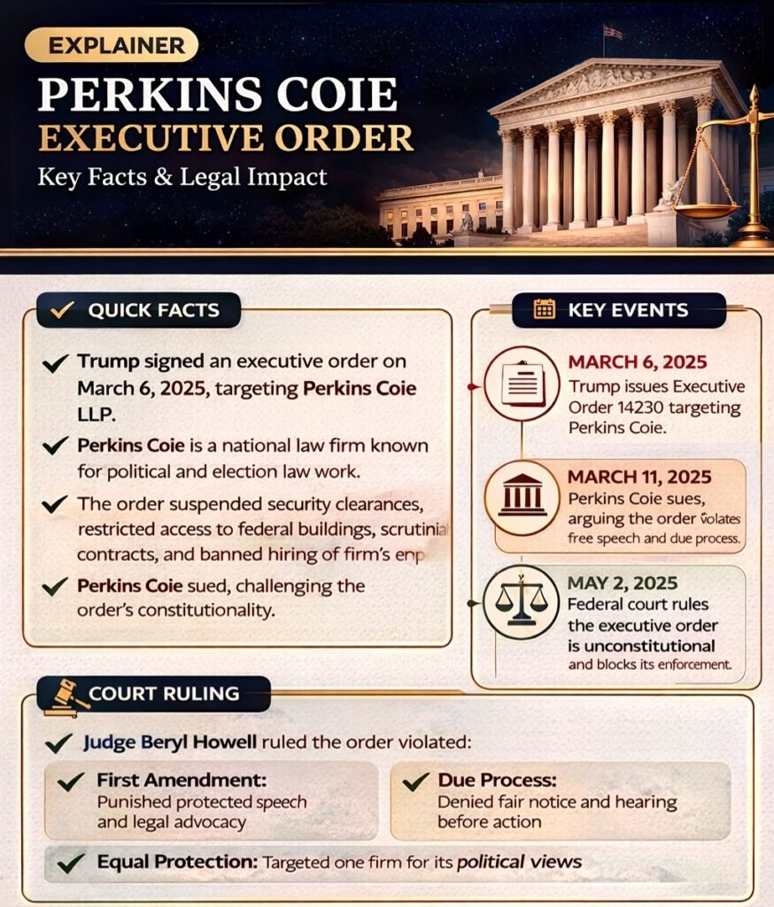 Perkins Coie executive order explained: key facts, lawsuit update, court ruling, and what it means for law firms and clients today.